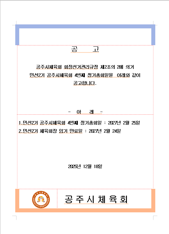 ¹Î¼±2±â °øÁÖ½ÃüÀ°È¸ 4¹øÂ° Á¤±âÃÑȸÀÏ