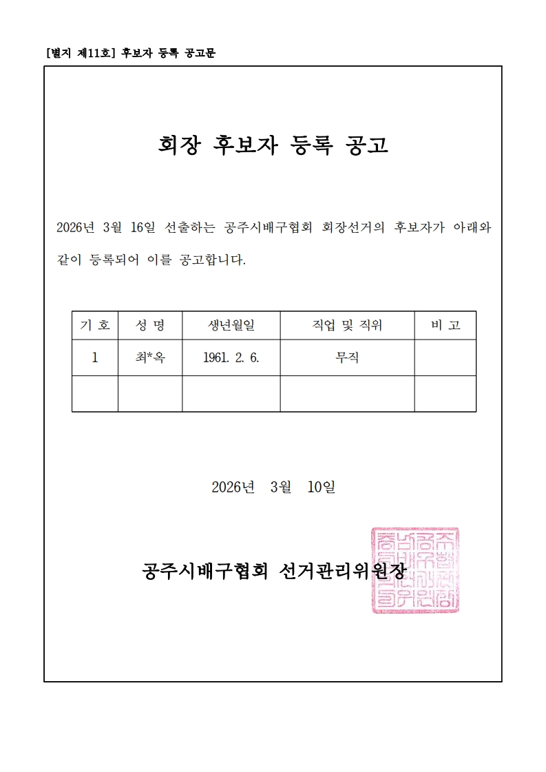 °øÁֽù豸Çùȸ ȸÀå Èĺ¸ÀÚ µî·Ï °ø°í