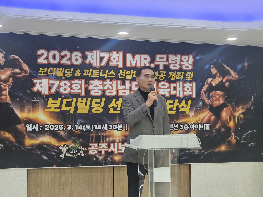 2026 Á¦7ȸ MR. ¹«·É¿Õ º¸µðºôµù & ÇÇÆ®´Ï½º ¼±¹ß´ëȸÀÇ ¼º°øÀûÀÎ °³ÃÖ¸¦ À§ÇÑ Çà»ç¿Í Á¦78ȸ ÃæÃ»³²µµÃ¼À°´ëȸ º¸µðºôµù ¼±¼ö´Ü °á´Ü½ÄÀÌ 3¿ù 14ÀÏ Åä¿äÀÏ ¿ÀÈÄ 6½Ã 30ºÐ °øÁÖ¸®¹ö½ºÄÁº¥¼Ç 3Ãþ ¾ÆÀ̺ñȦ¿¡¼ ¿·È½À´Ï´Ù.
