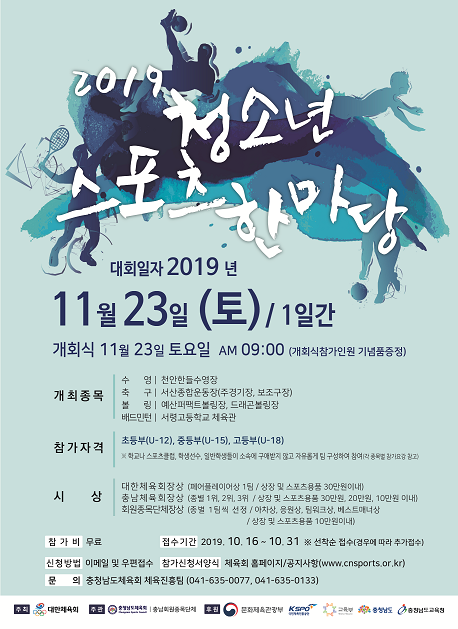 Ãæ³²Ã¼À°È¸¿¡¼´Â 2019 û¼Ò³â½ºÆ÷Ã÷ÇѸ¶´ç´ëȸ¸¦ °³ÃÖÇÕ´Ï´Ù. ÇлýµéÀÇ ¸¹Àº °ü½É°ú Âü¿© ¹Ù¶ø´Ï´Ù. ¡à ¸ñÀû
