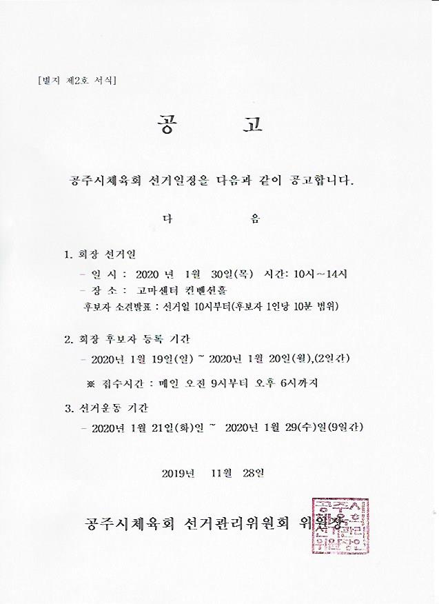 °øÁÖ½ÃüÀ°È¸Àå ¼±°ÅÀÏ °ø°í