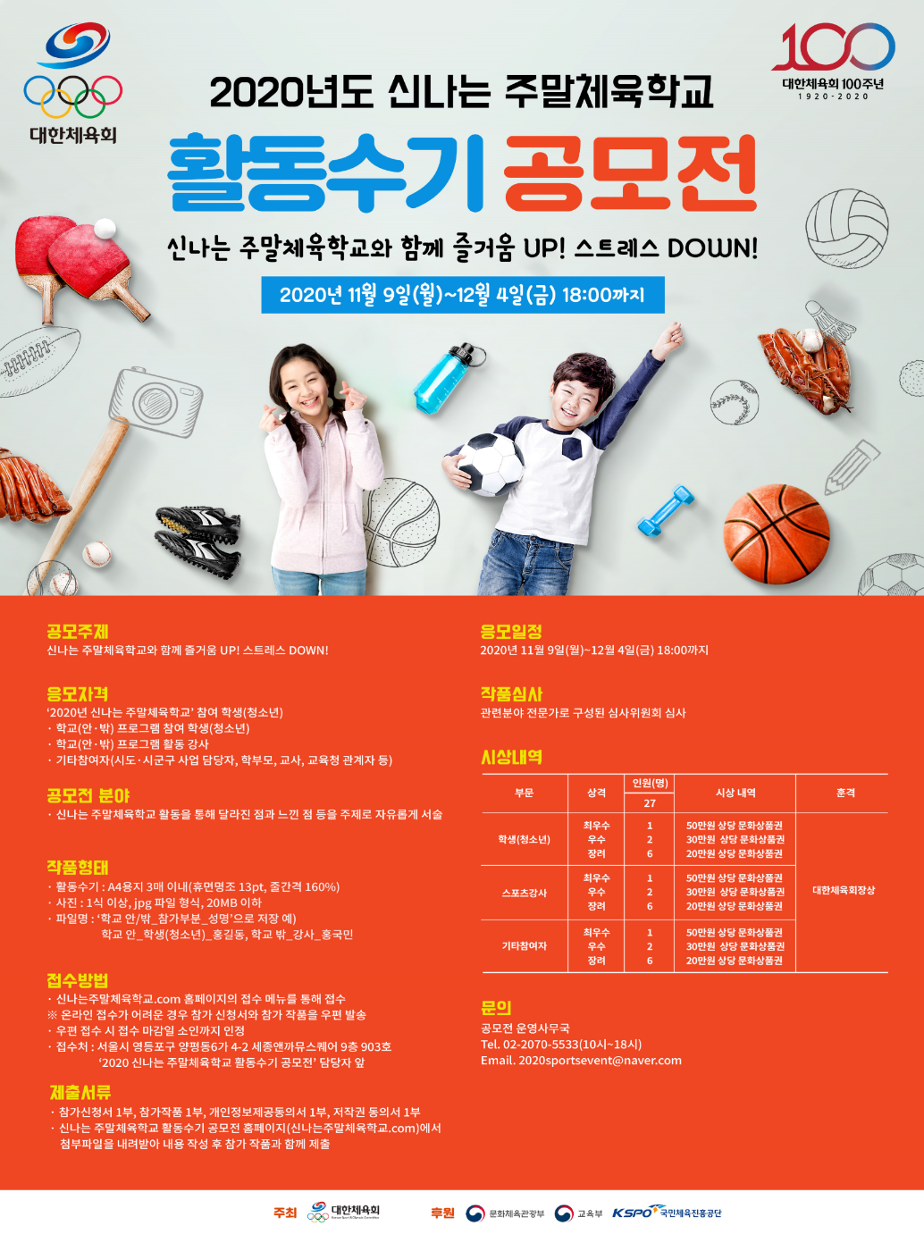 2020³â ½Å³ª´Â ÁÖ¸»Ã¼À°Çб³ Ȱµ¿¼ö±â °ø¸ðÀü ¾È³»