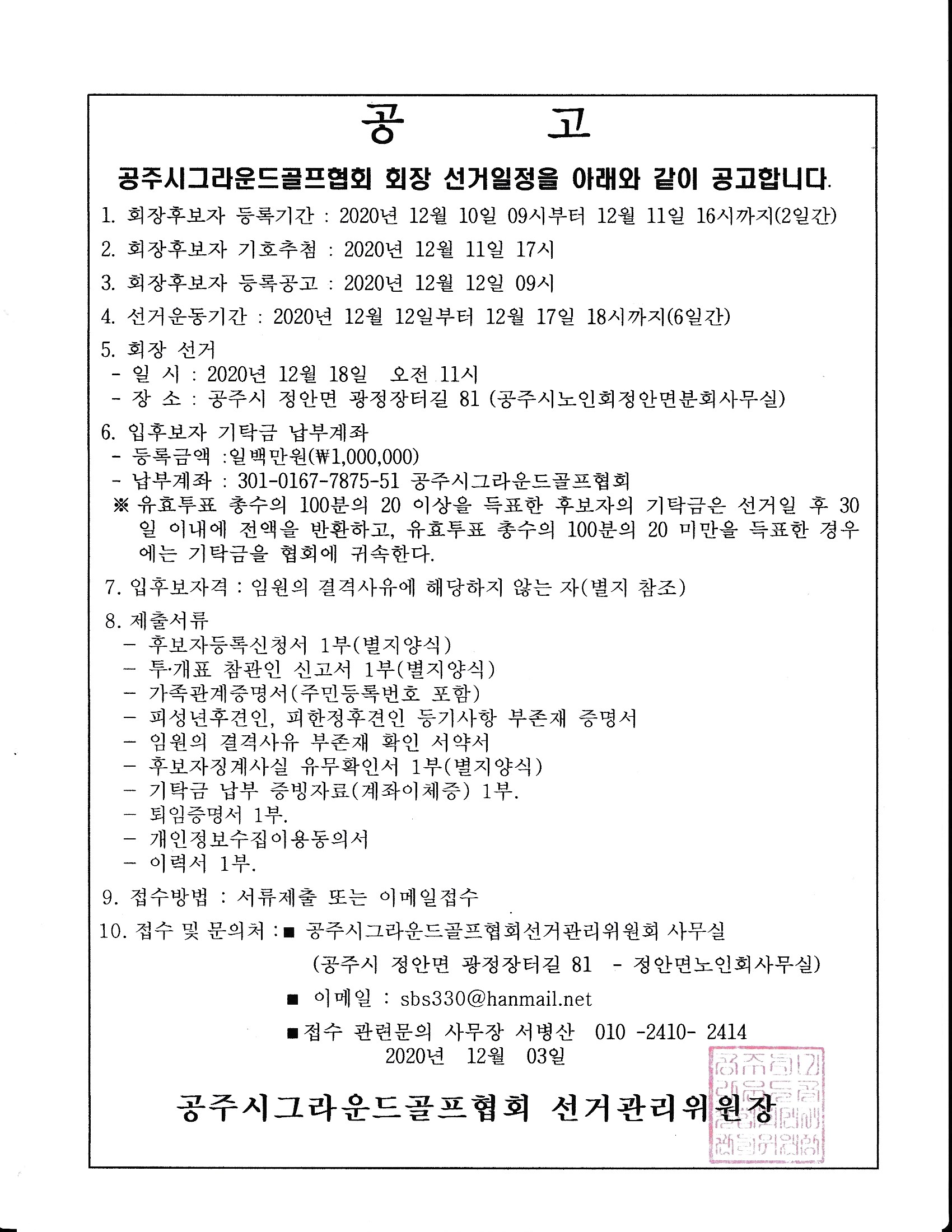 °øÁֽñ׶ó¿îµå°ñÇÁÇùȸ ȸÀå¼±°Å °ø°í