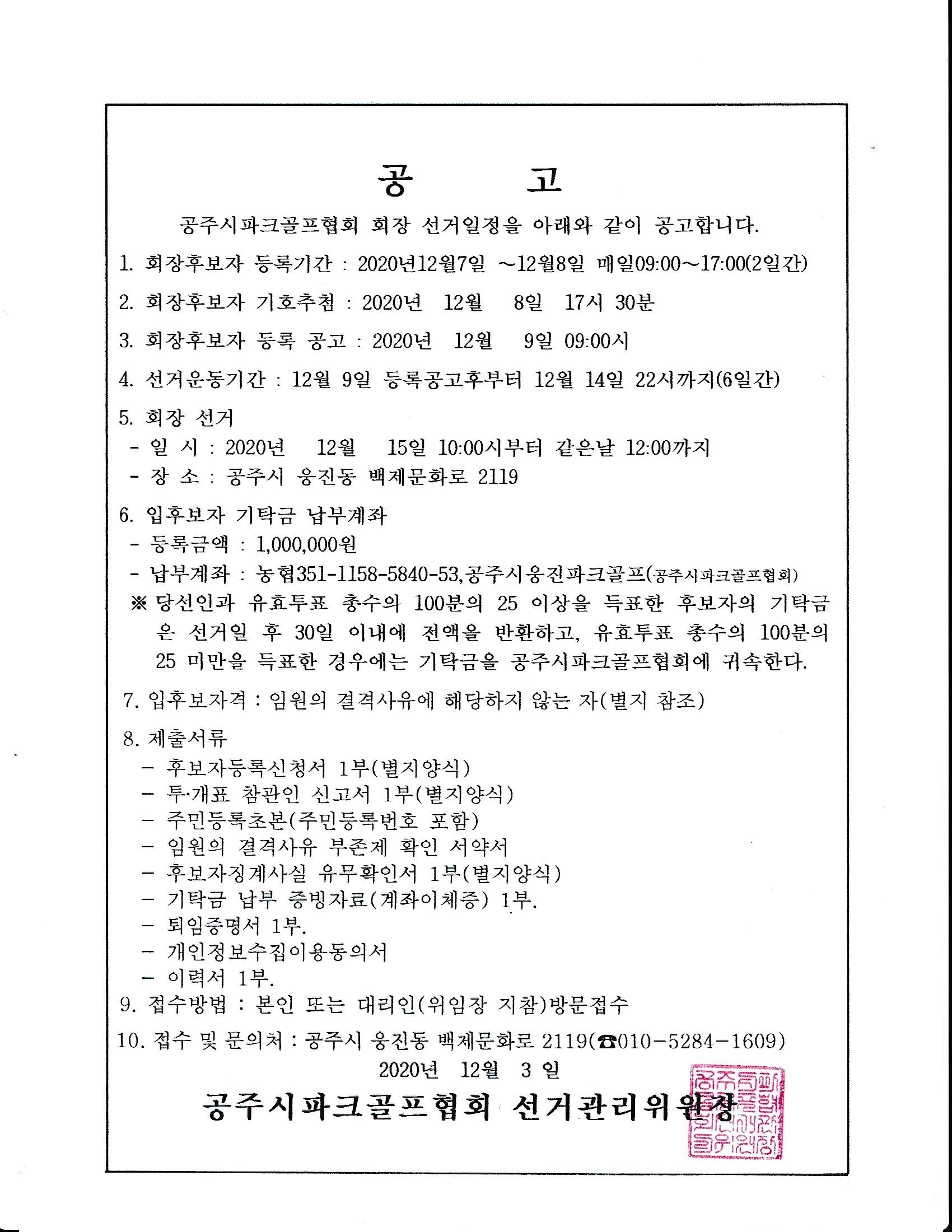 °øÁÖ½ÃÆÄÅ©°ñÇÁÇùȸ ȸÀå¼±°Å °ø°í