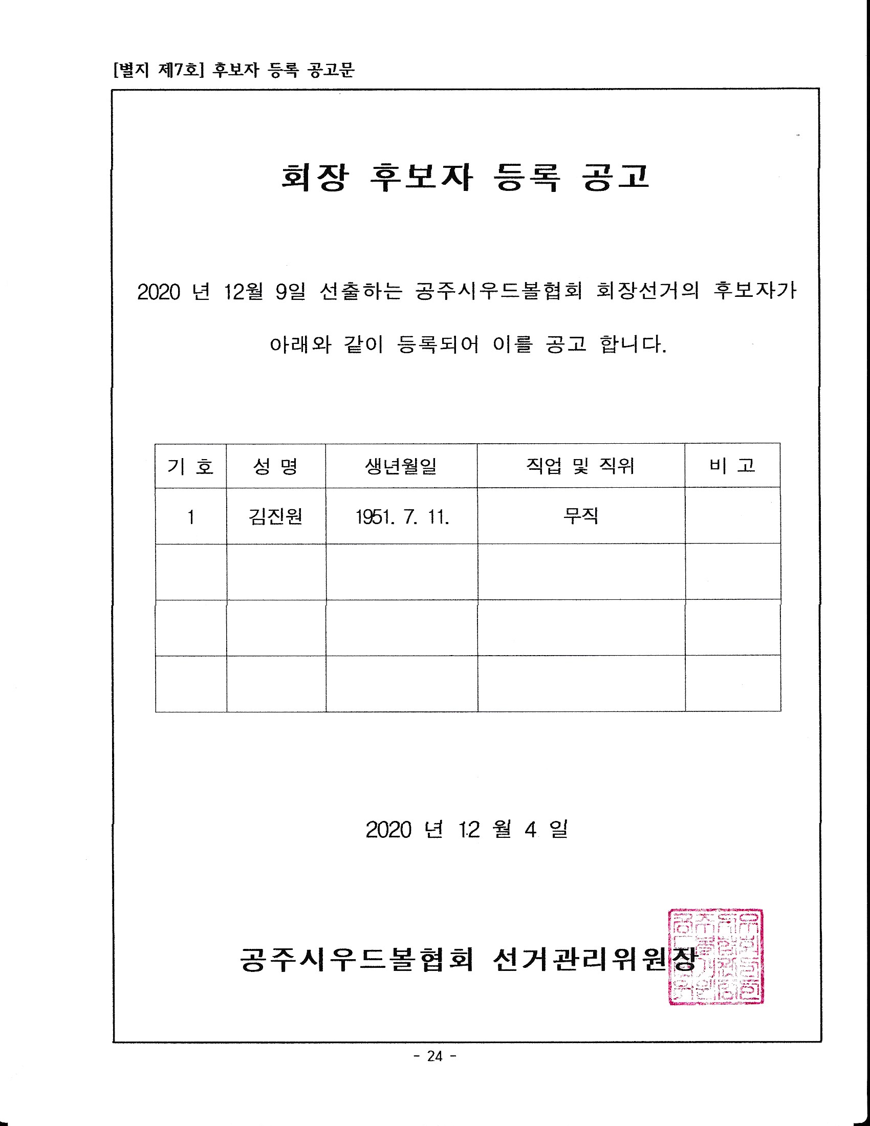 °øÁֽÿìµåº¼Çùȸ ȸÀå Èĺ¸ÀÚ µî·Ï°ø°í