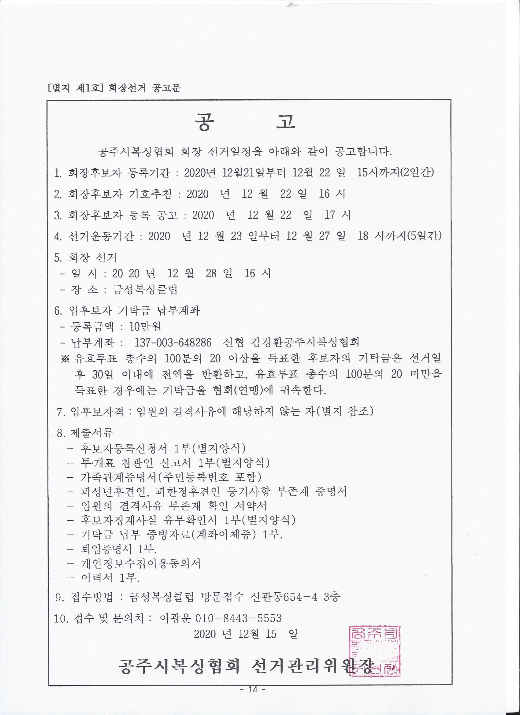 °øÁֽú¹½ÌÇùȸ ȸÀå¼±°Å °ø°í