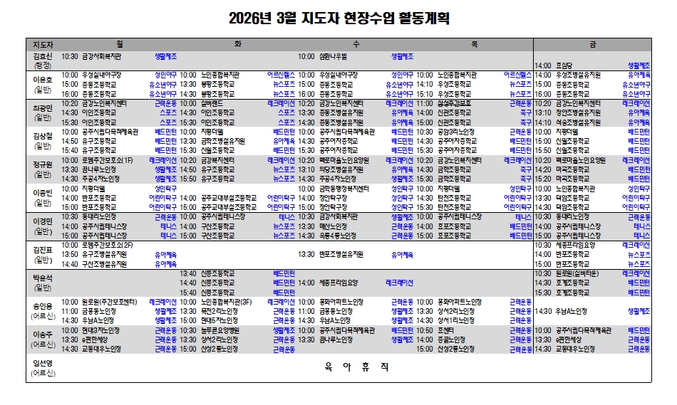 2026 3¿ù »ýȰüÀ°ÁöµµÀÚ ¼ö¾÷ÇöȲ